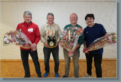 Kleines Preisschießen am 10.02.2025 Es wurde wieder ein monatliches Preisschießen durchgeführt, das auf Blattl Wertung ausgeschossen wurde Schützen Ergebnisse: 1 Platz Georg Ließel 12 Teiler 2 Platz Birgit Schindler 16 Teiler 3 Platz Paula Huber 58 Teiler