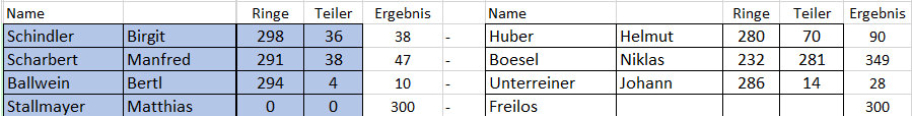 die jährlich an den Vortelschießen teilnehmen, werden dementsprechend viele Paarungen ausgelost.Der Wanderpokal wird mit 30 Schuß