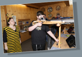 Schießstand. Anschließend mussten mit dem Luftgewehr 20 Schuss stehend aufgelegt abgeben werden. Damit